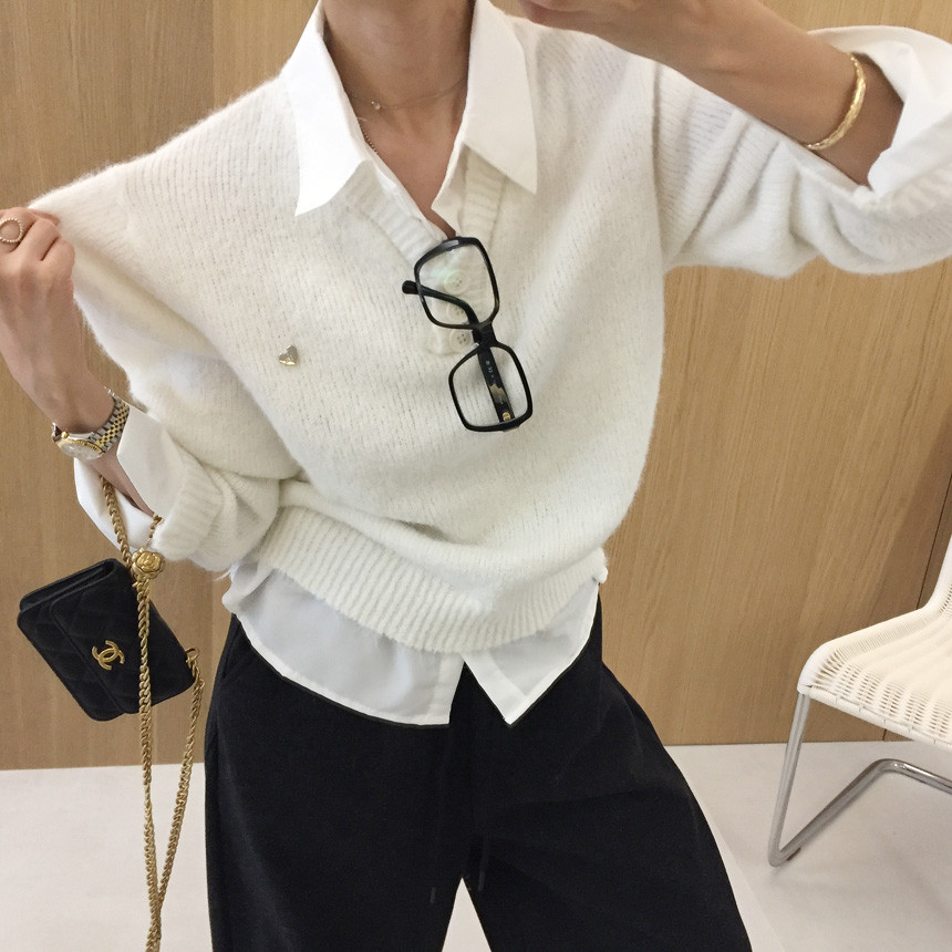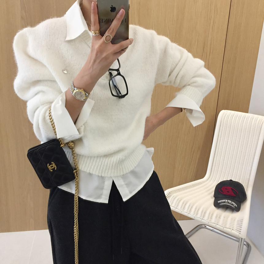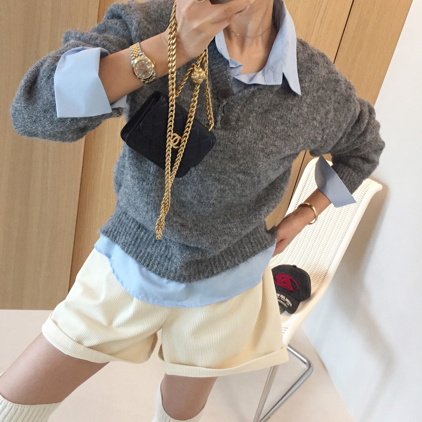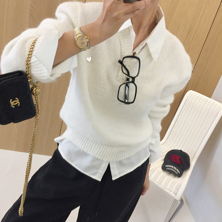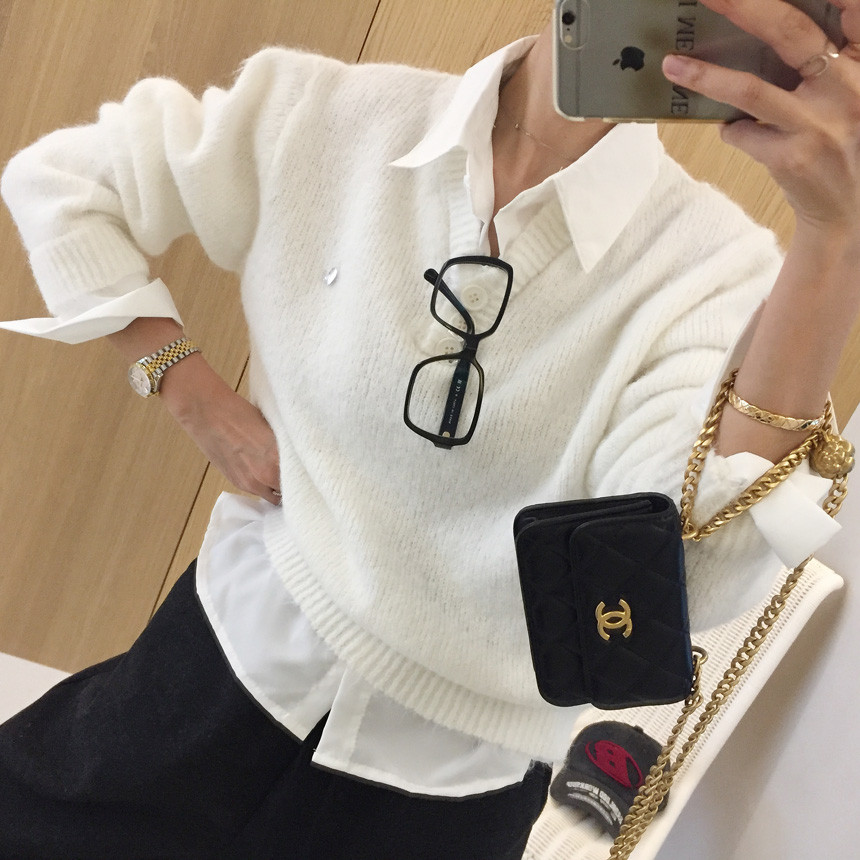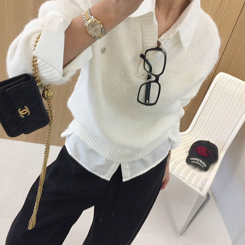 셔츠 배색 레이어드 니트 보여드릴게용!