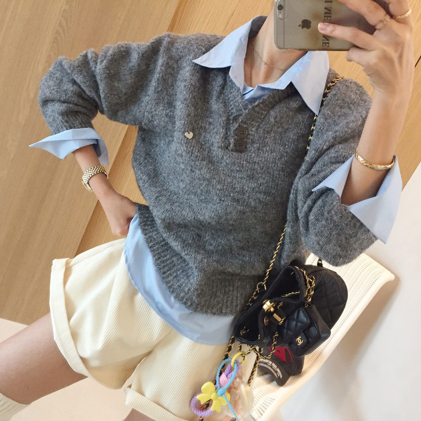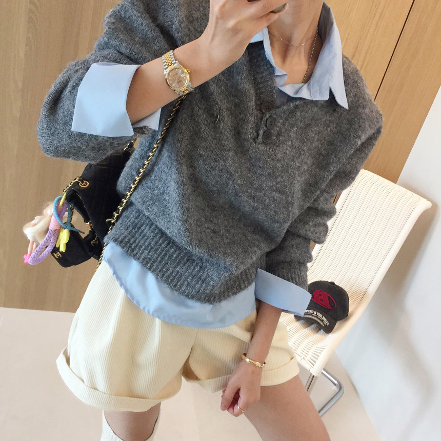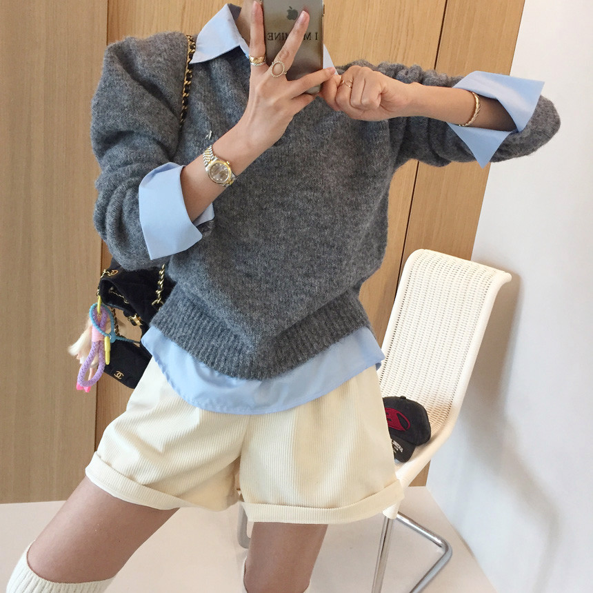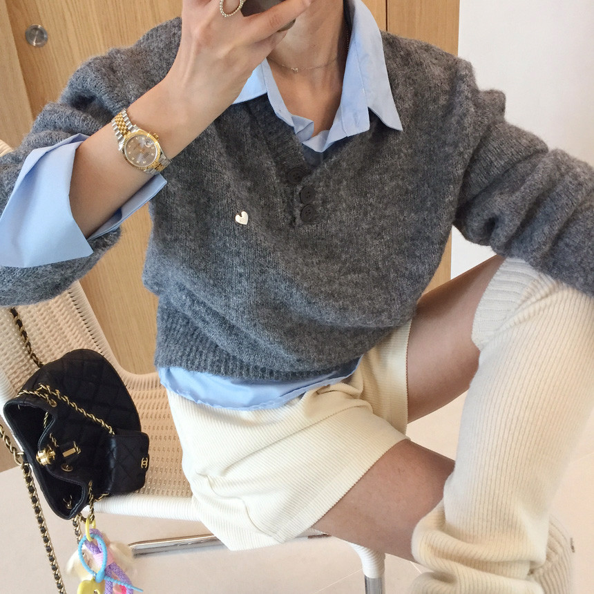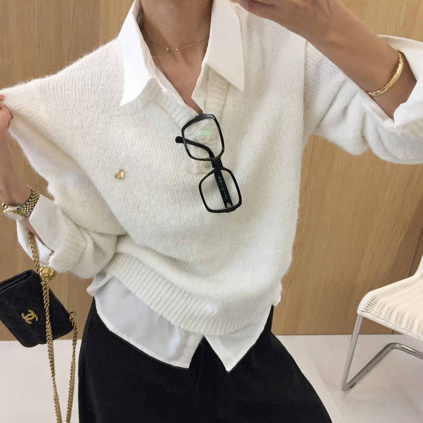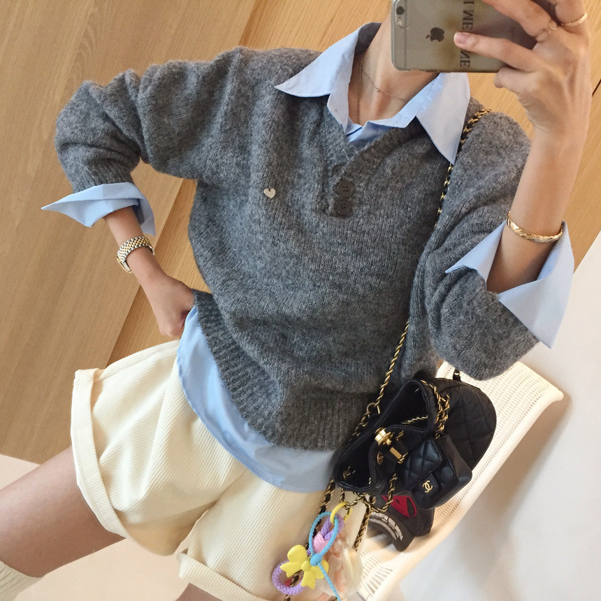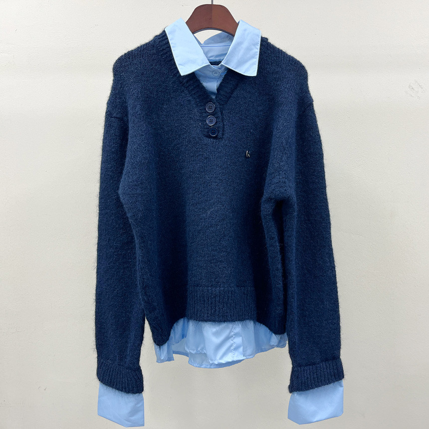 셔츠 배색 레이어드 니트 보여드릴게용!