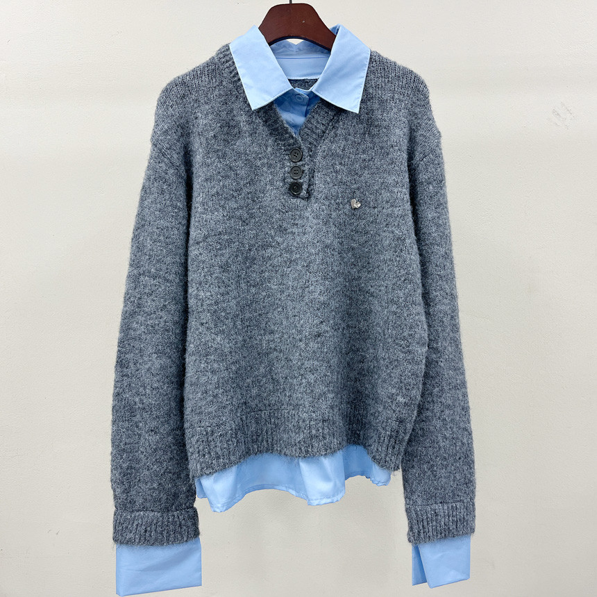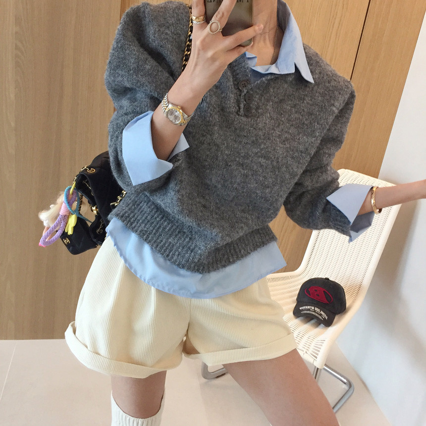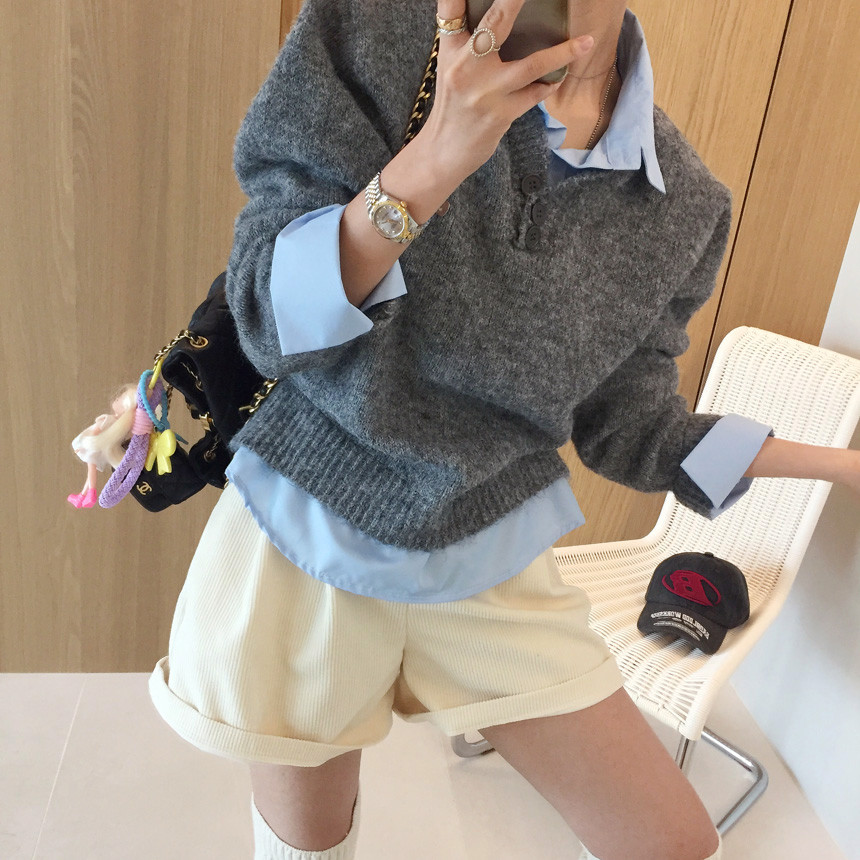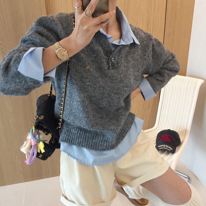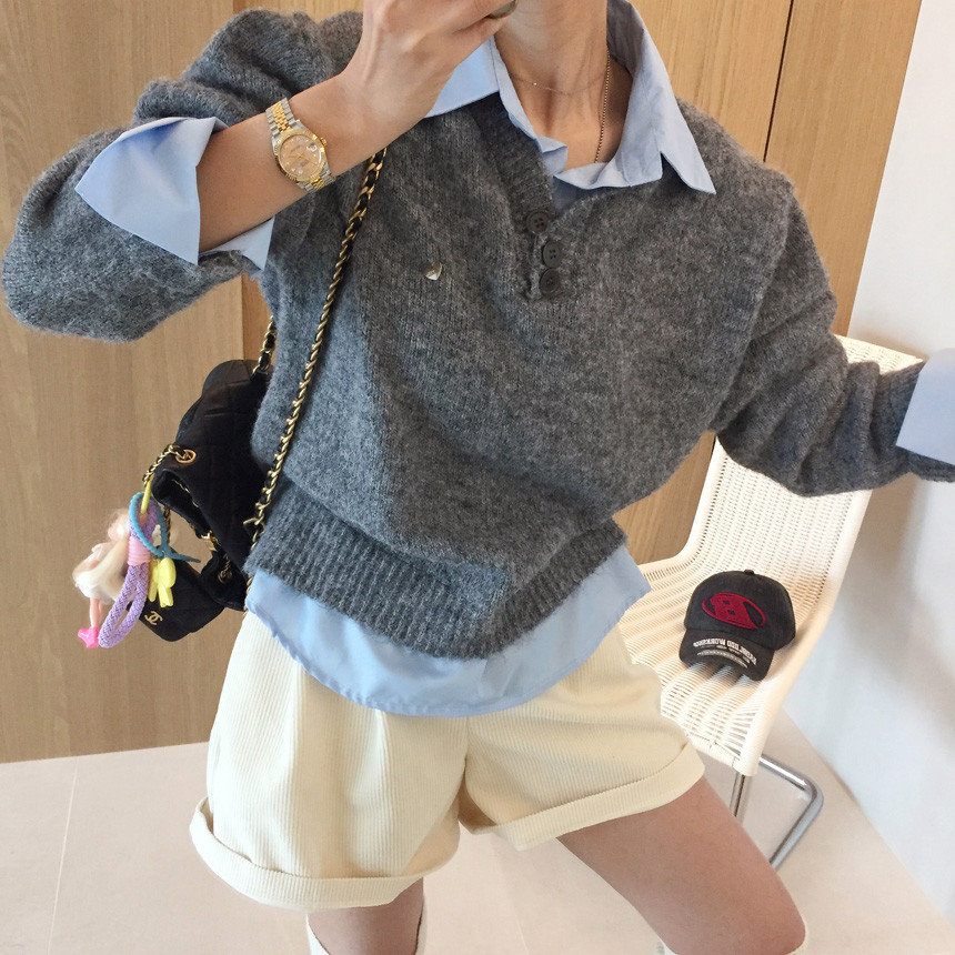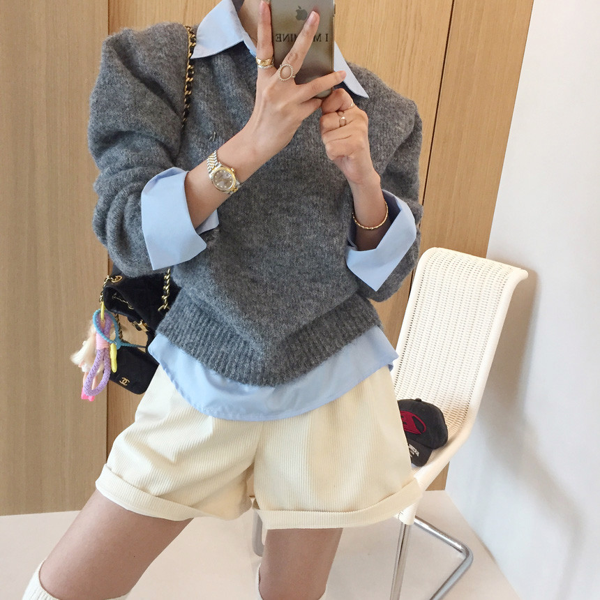 셔츠 배색 레이어드 니트 보여드릴게용!
