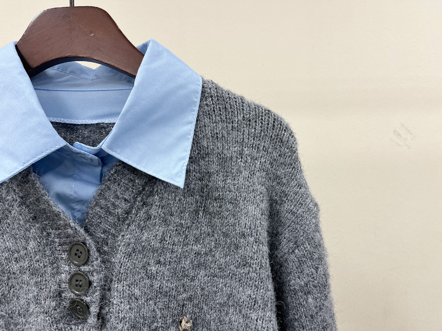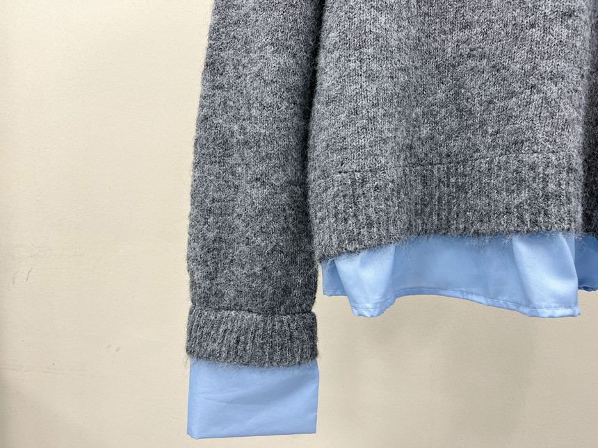 넥라인과 소매에 셔츠를 레이어드 한 듯한 디자인으로