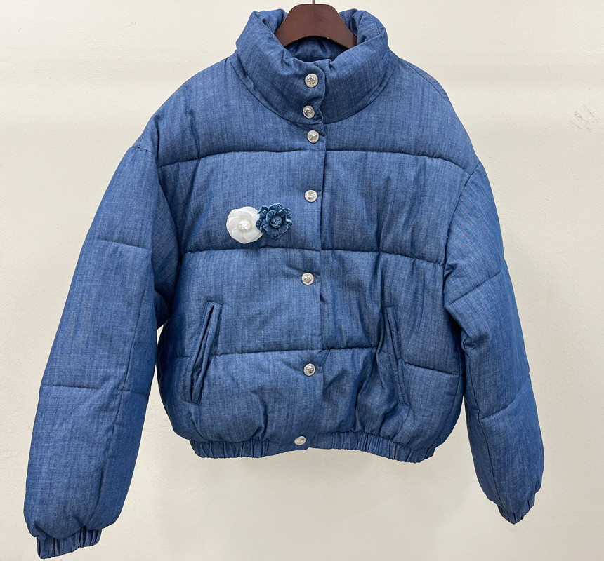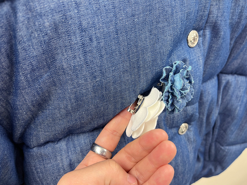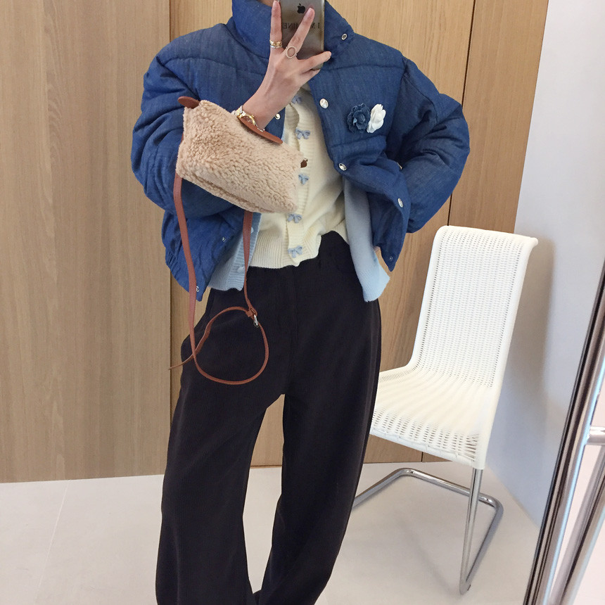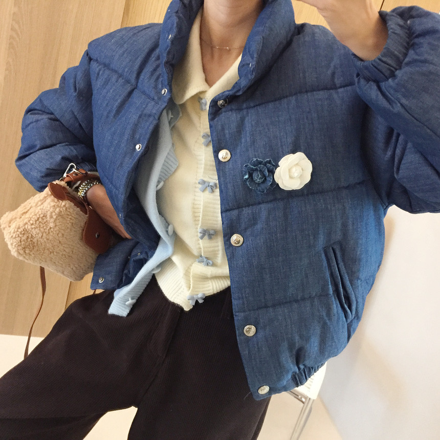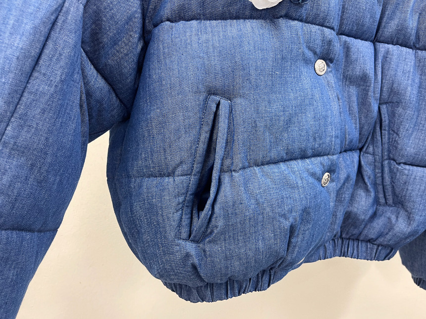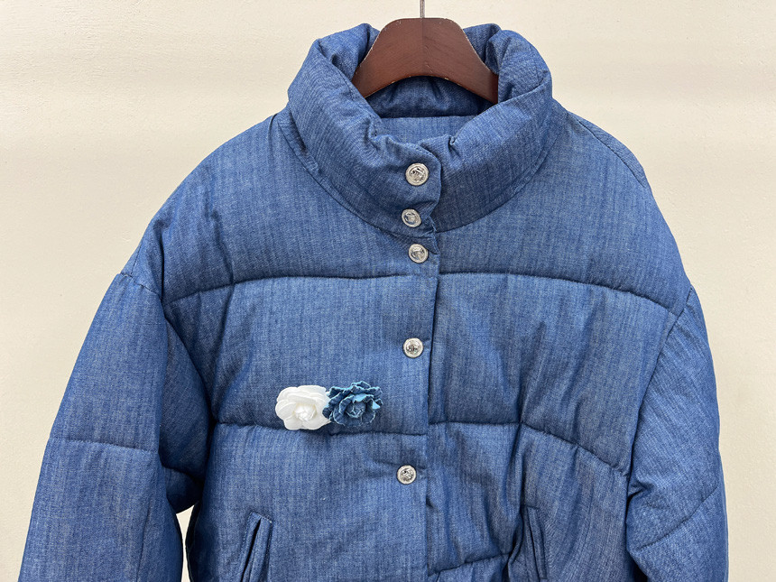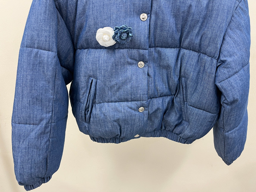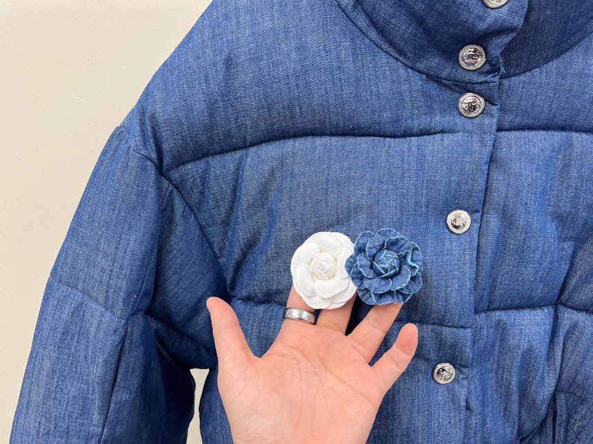 스타일리쉬하게 뽐내줄 브로치 샴브레이 데님 패딩을 소개해드릴꼐용 : )