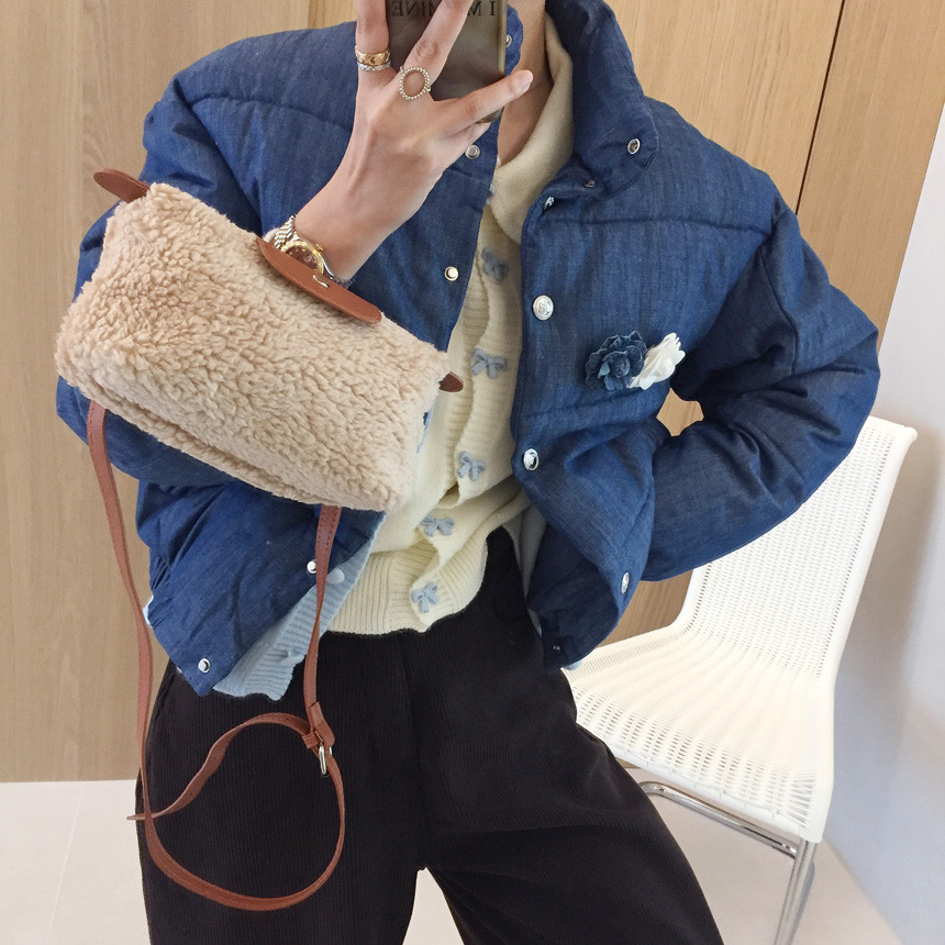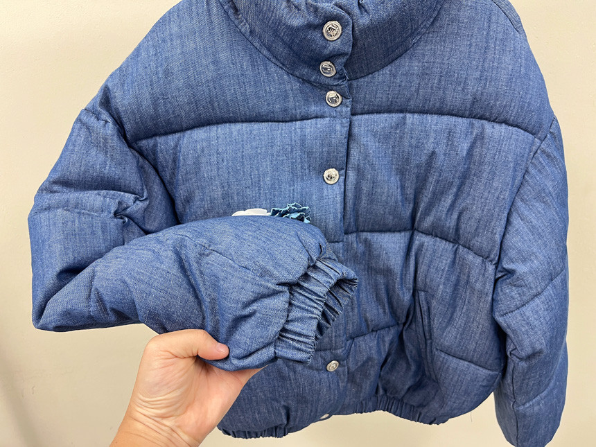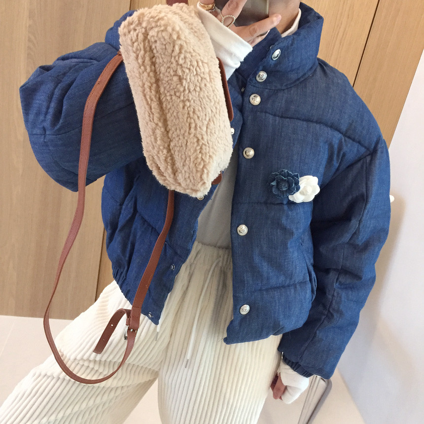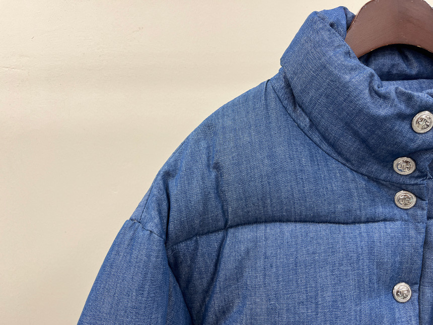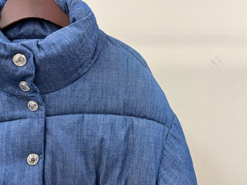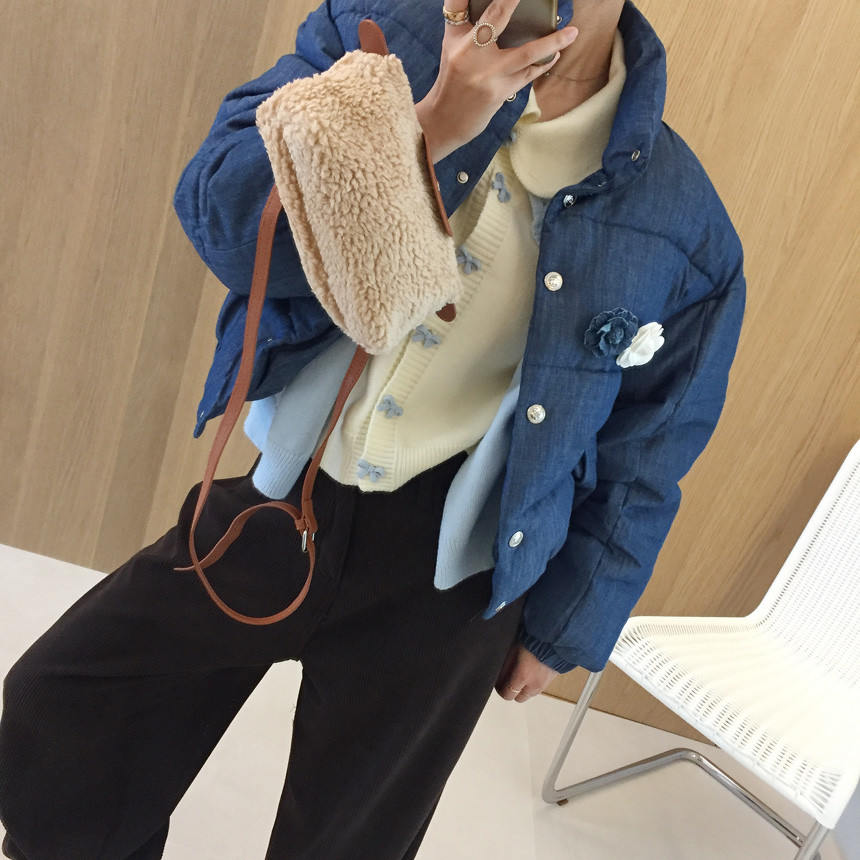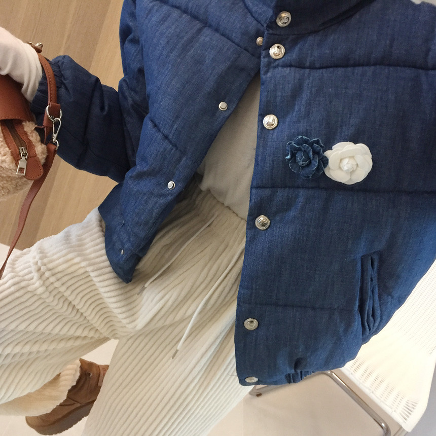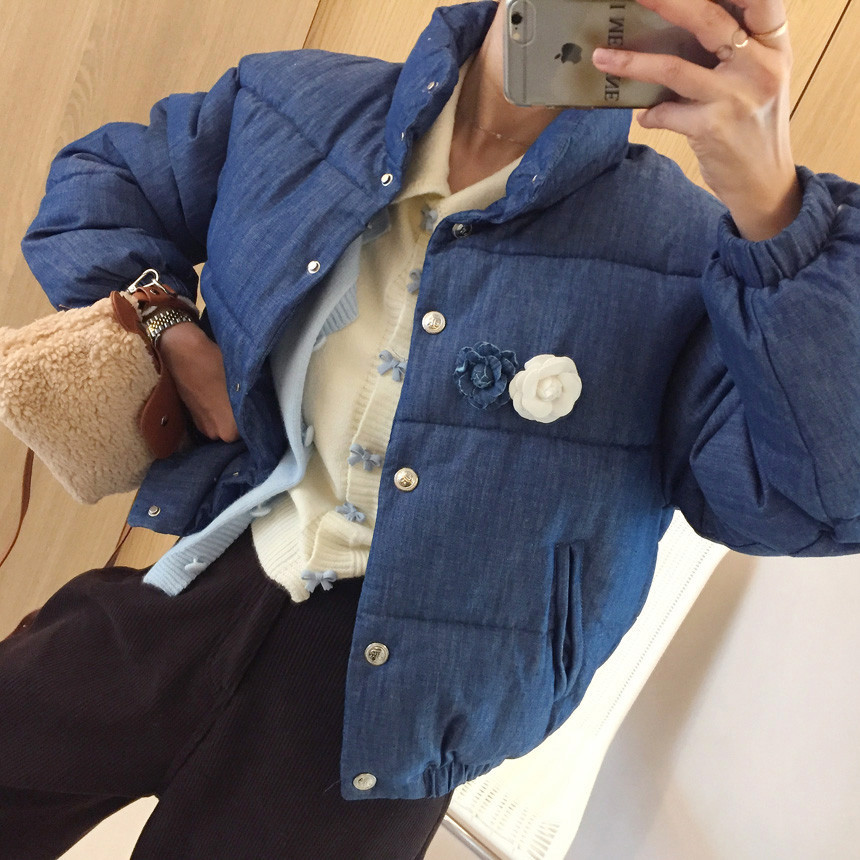 스타일리쉬하게 뽐내줄 브로치 샴브레이 데님 패딩을 소개해드릴꼐용 : )