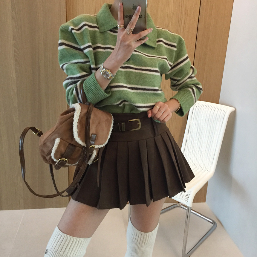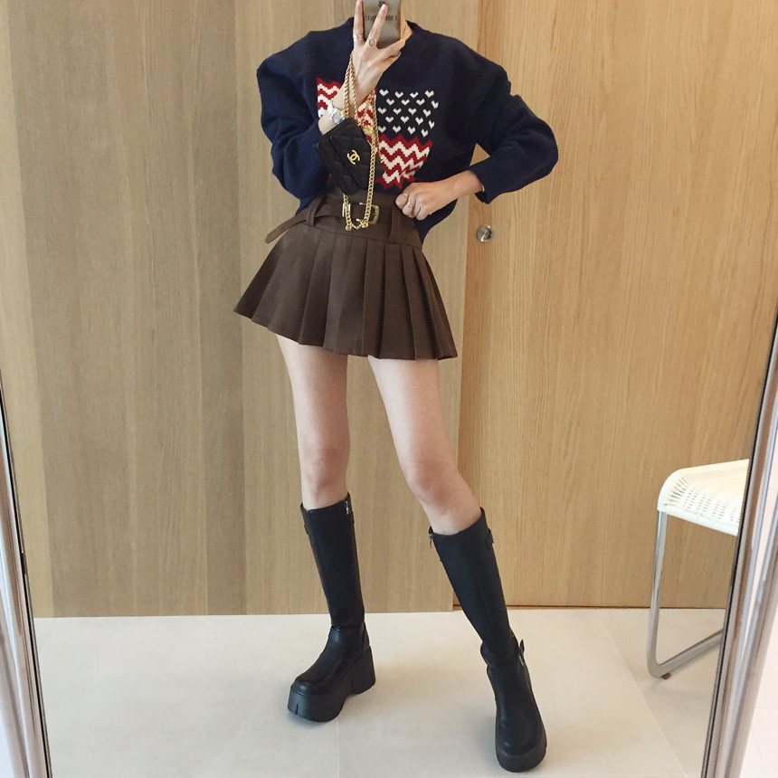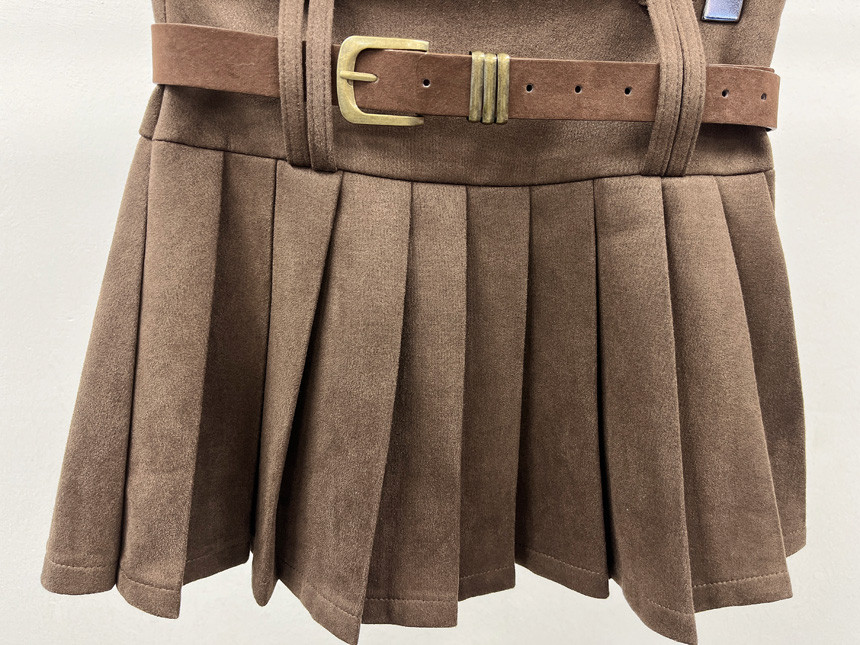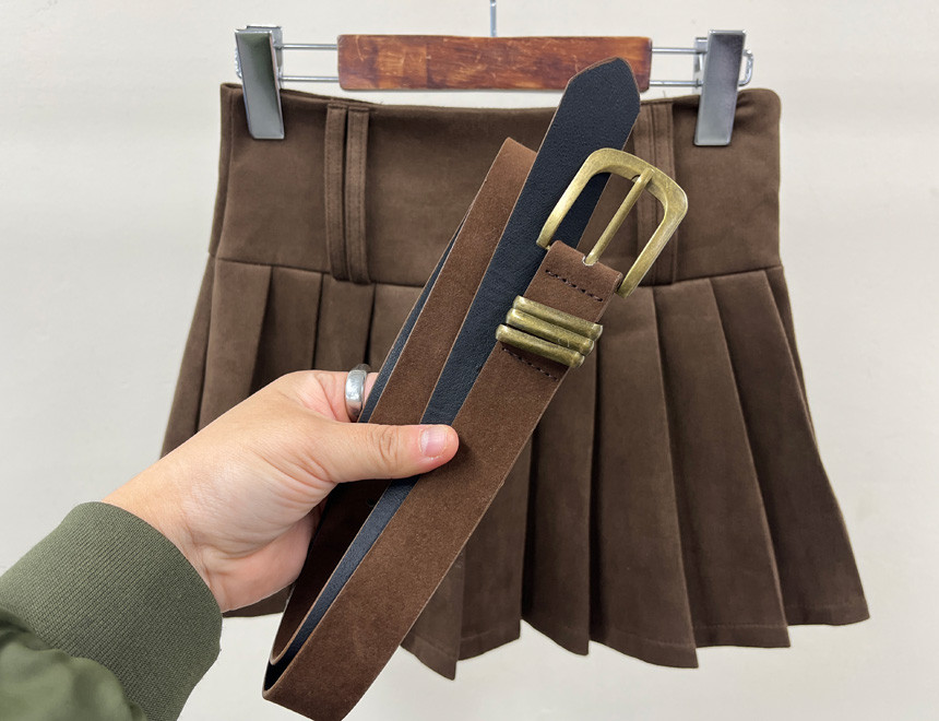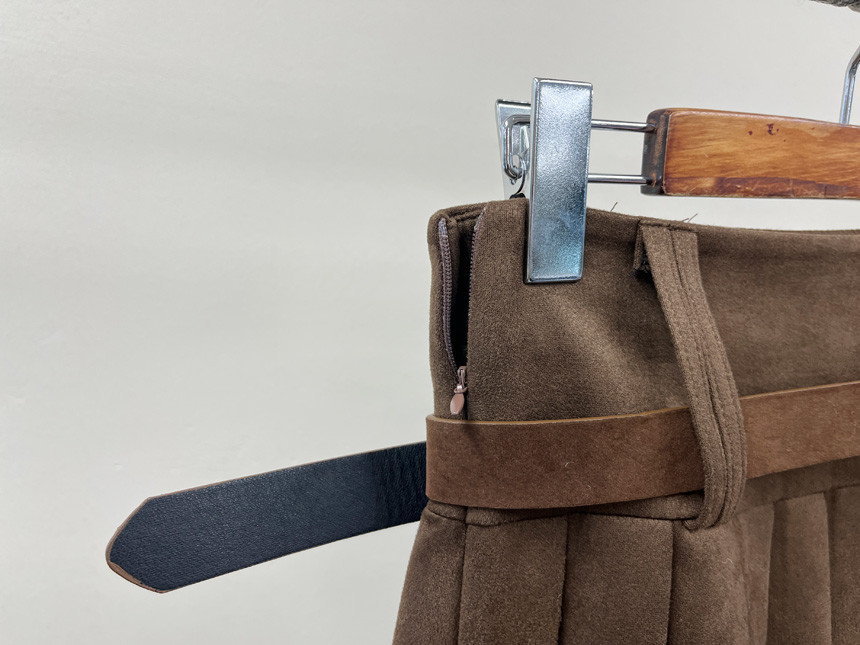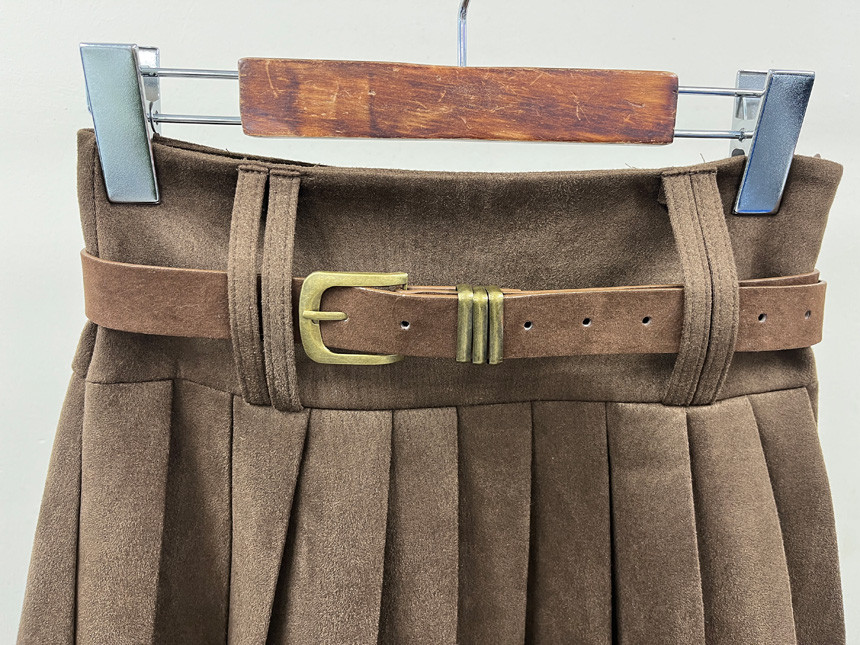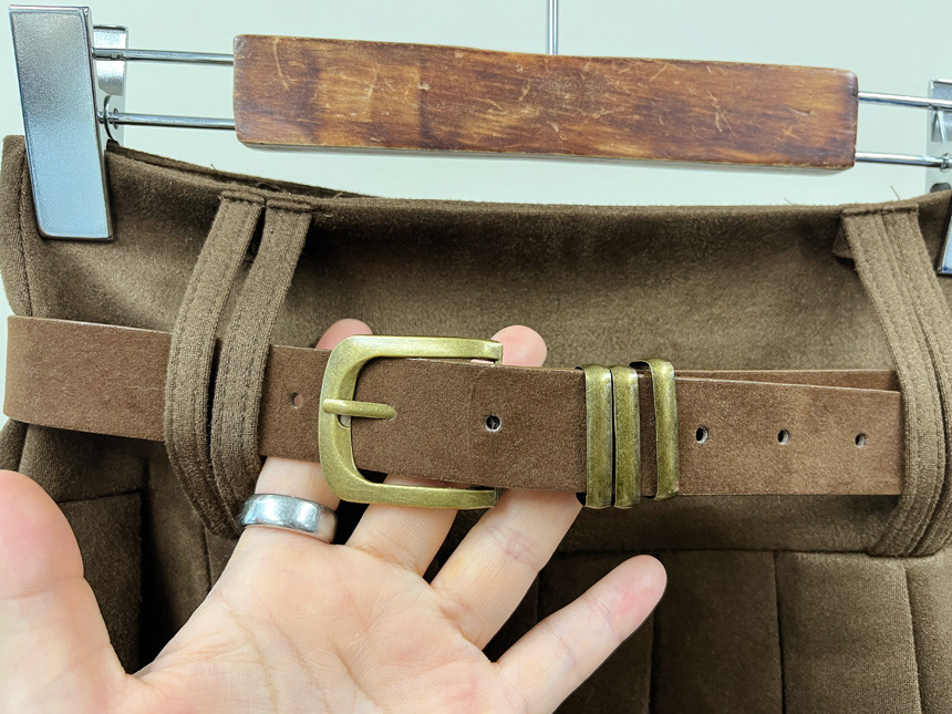 촤르르 퍼지는 A라인 느낌의 플레어 핏과 볼드한 레더벨트가