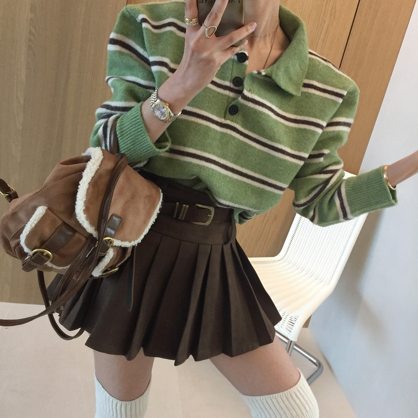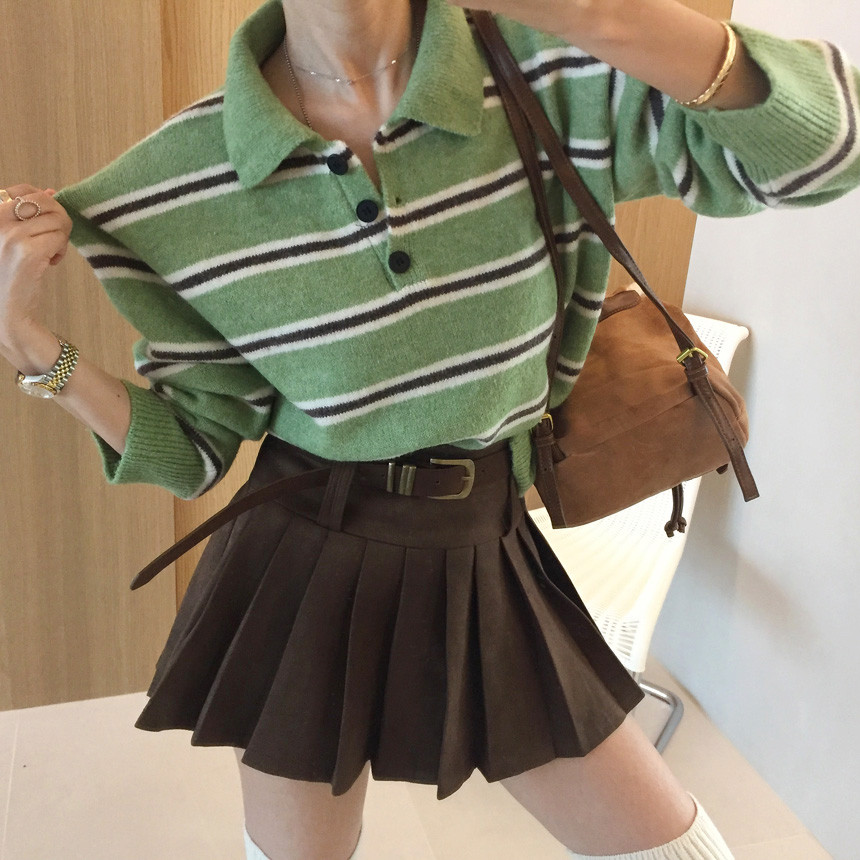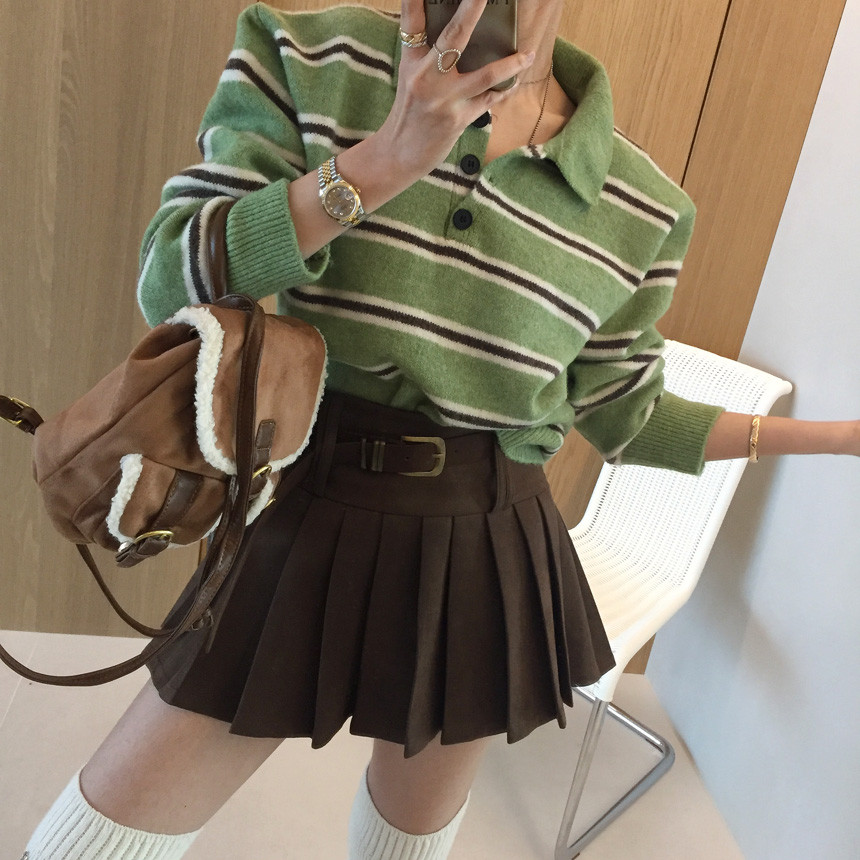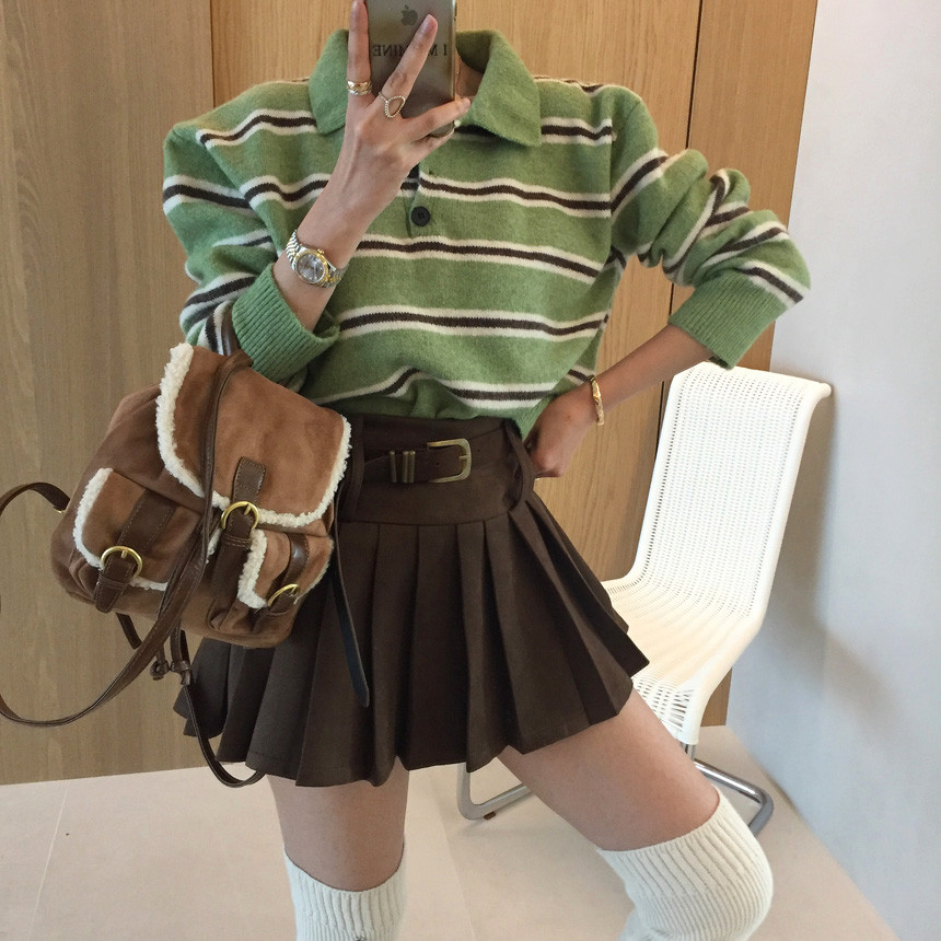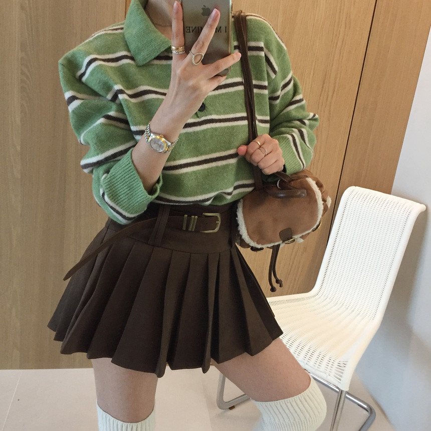 촤르르 퍼지는 A라인 느낌의 플레어 핏과 볼드한 레더벨트가