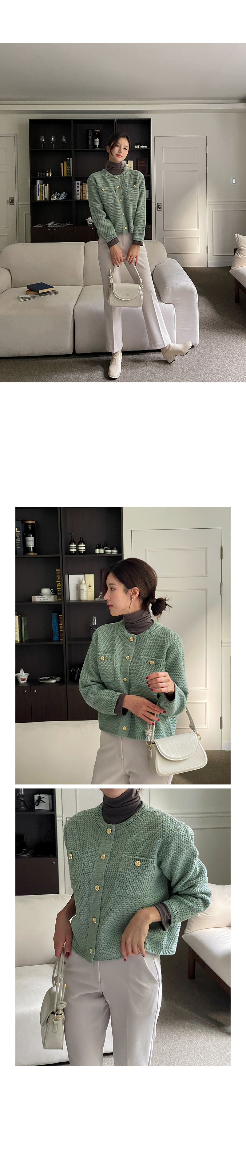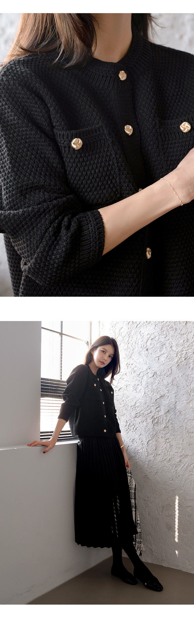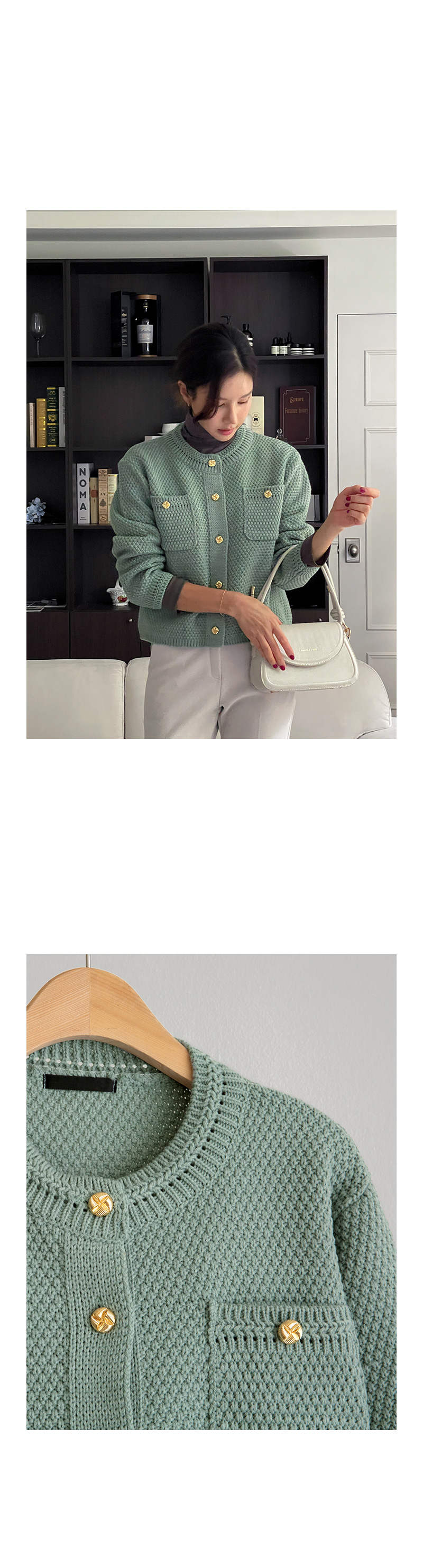 캐리 골드 버튼 가디건