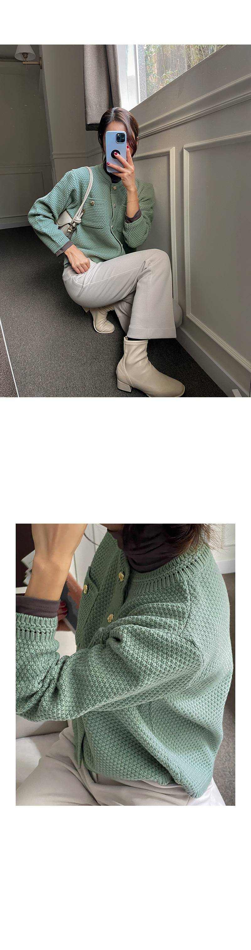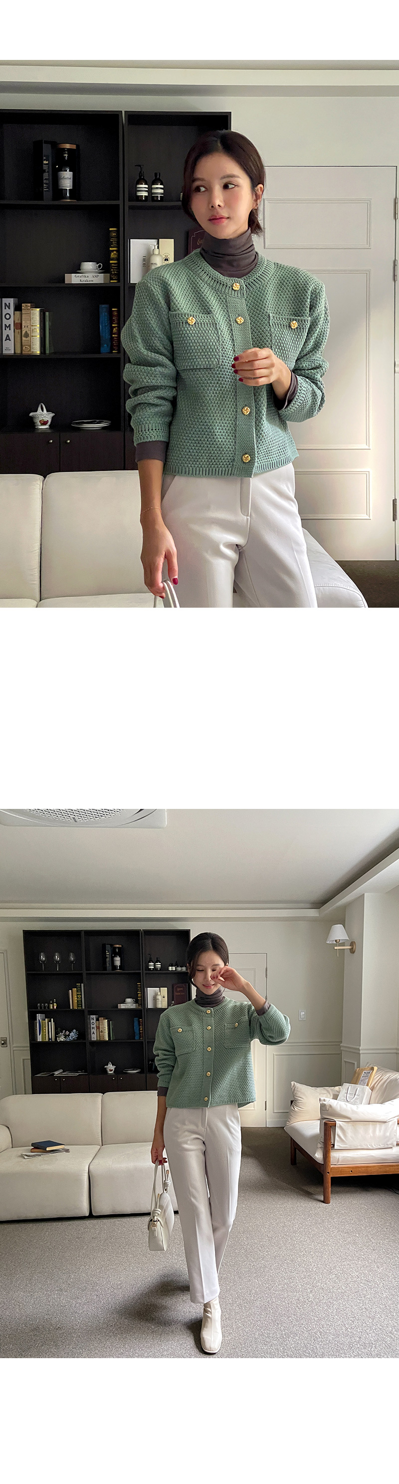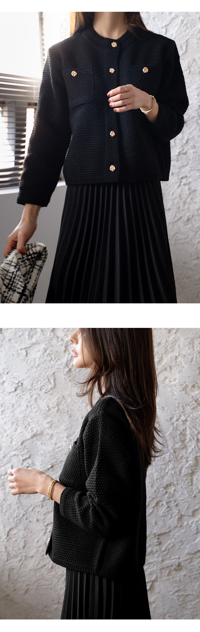 캐리 골드 버튼 가디건