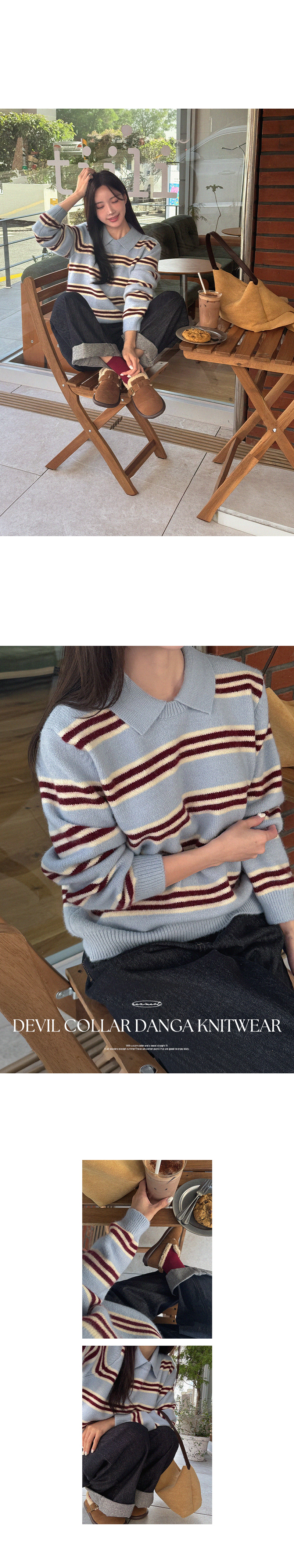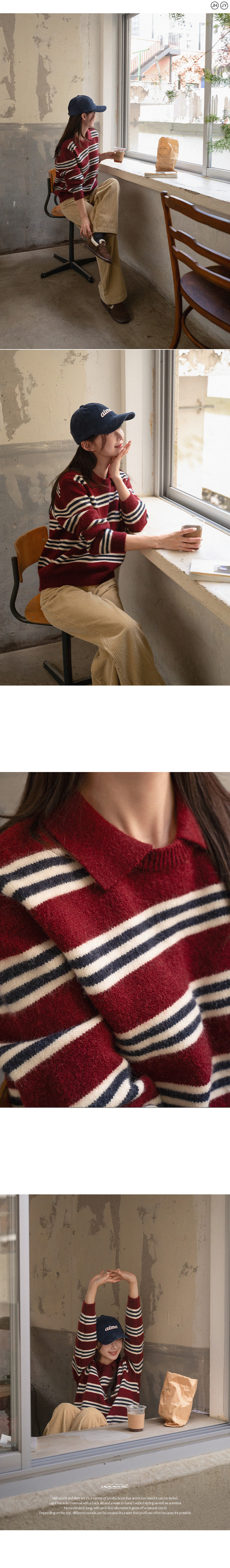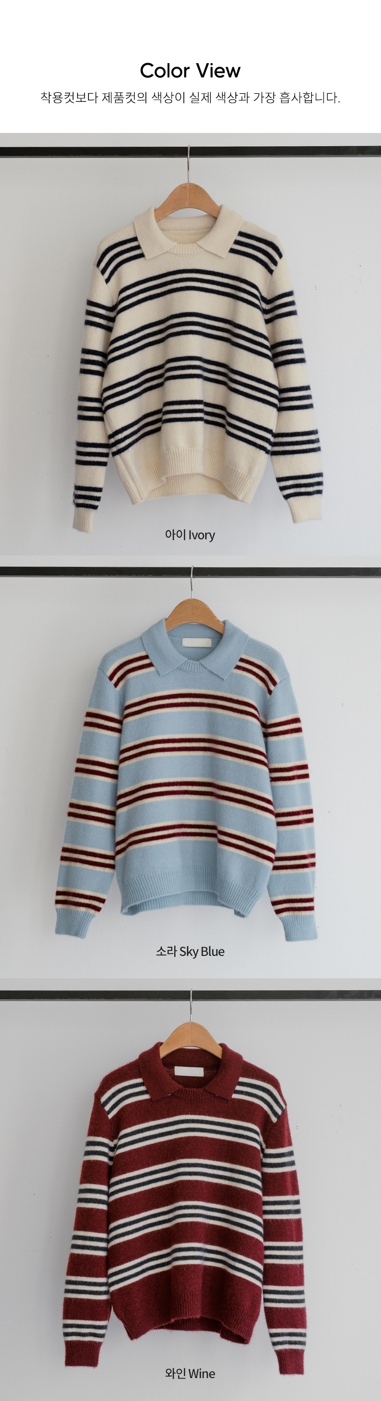 라운드넥 위에 카라가 덧대어진 디자인으로