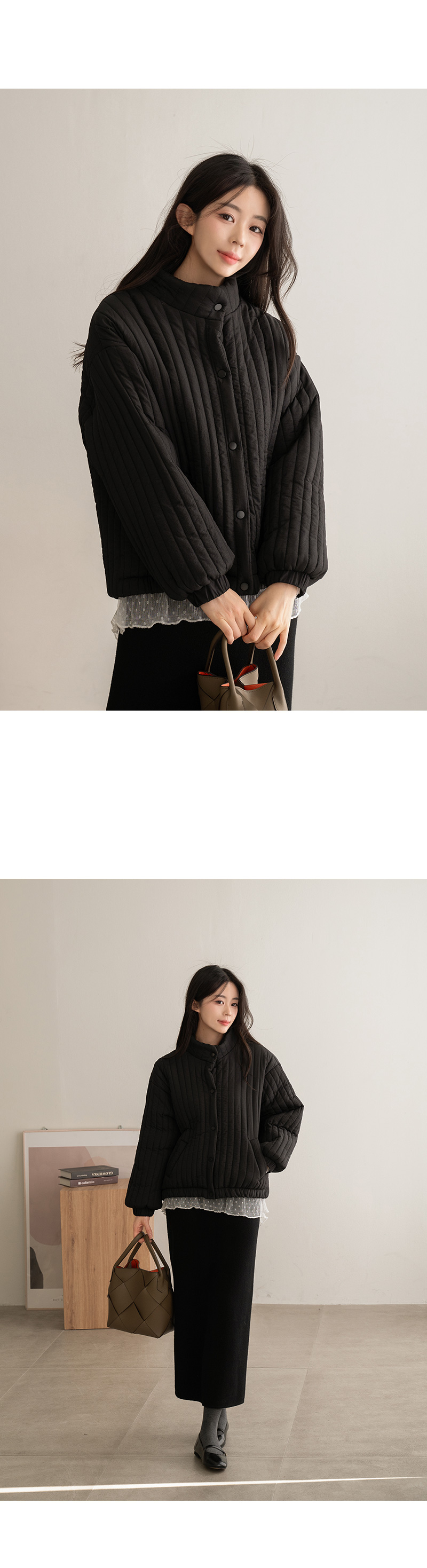 여유 있는 핏이지만 입체적인 세로 퀼팅 디자인으로