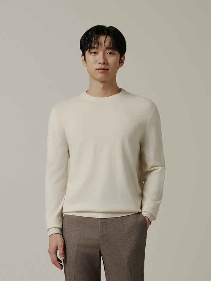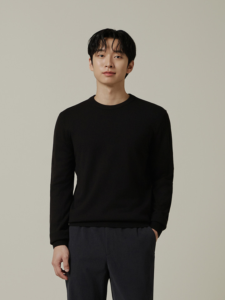 남성) 워셔블 캐시필 라운드 긴팔 니트