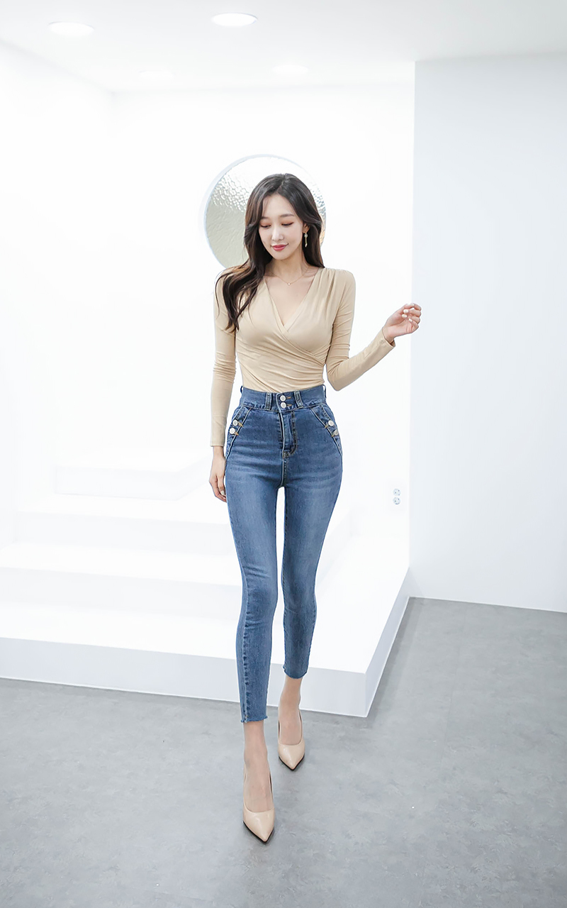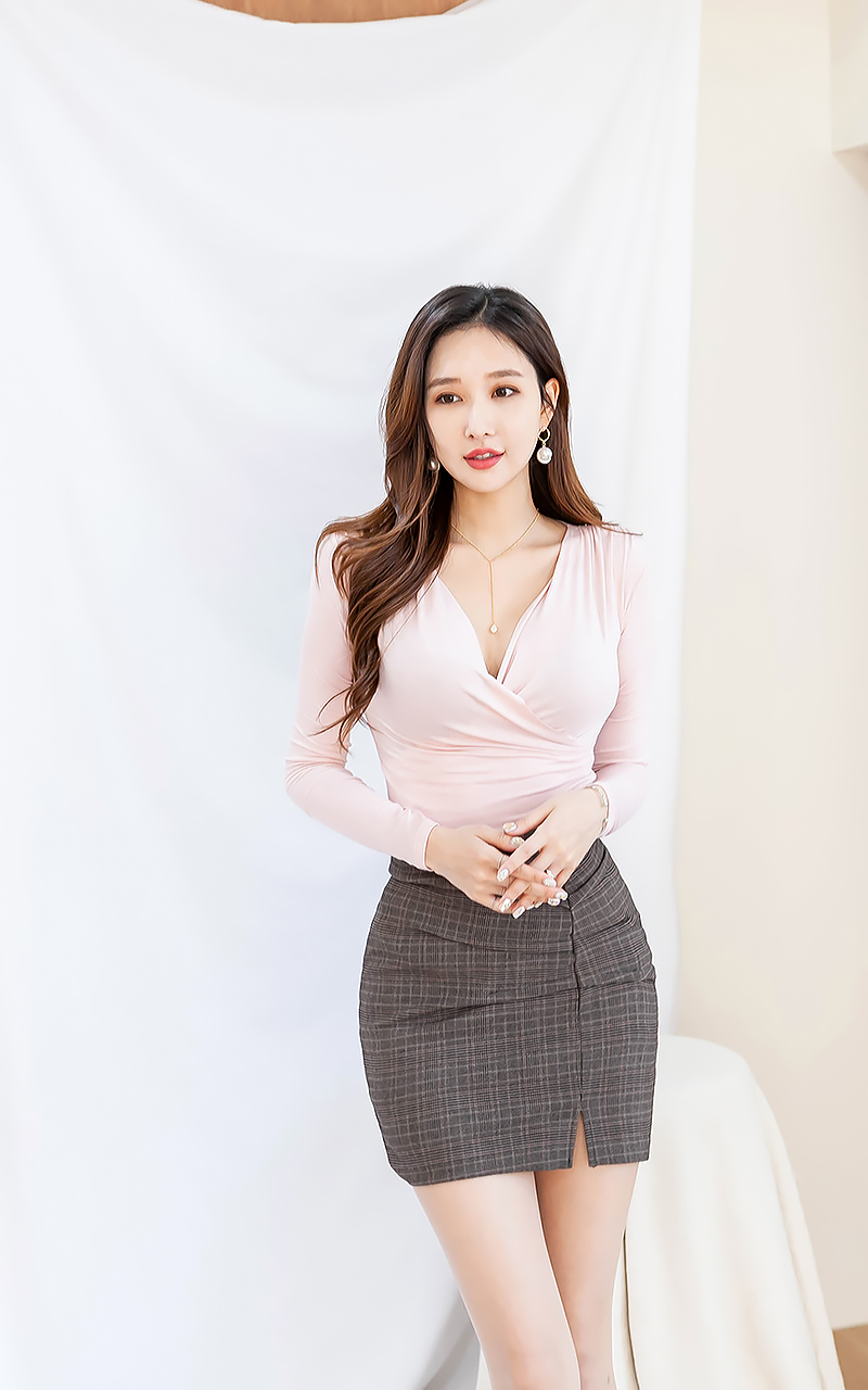 허리 왼쪽부터 감싸진 언발랩이예요. 허리가 짤록해 보입니다.