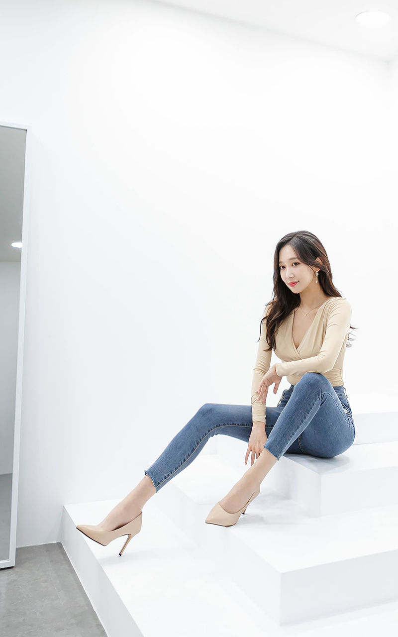 모델처럼 네크라인을 넓게 입거나 제품사진처럼 예쁘게 여며 입어도 좋아요.